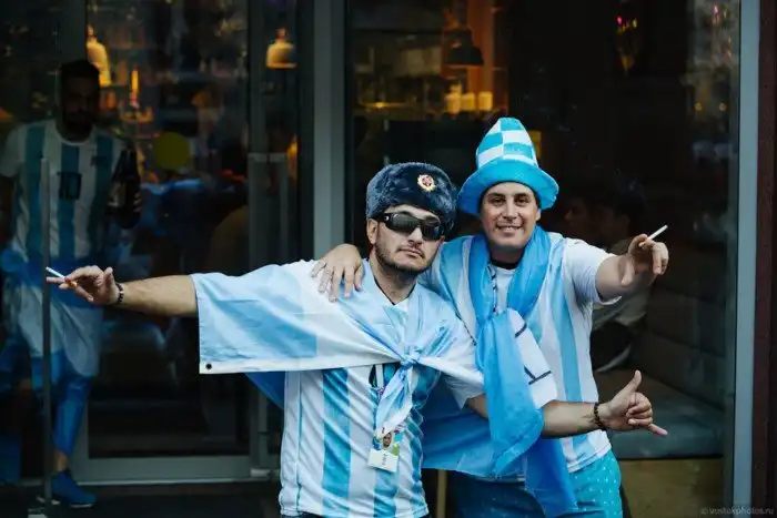 Еще одно популярное развлечение: фотографироваться с фанатами. Те стоят с флагом и позируют, а к ним собирается очередь на фото.