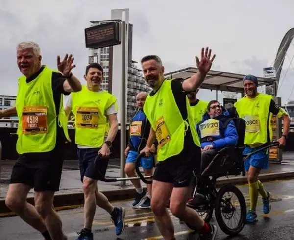 В забеге эти парни были последними, но они довезли ребенка до финишной прямой