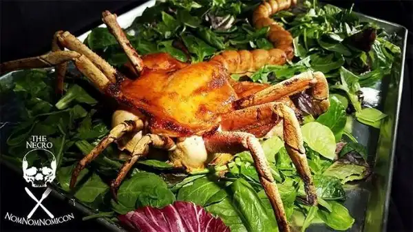 Шеф-повар Хеллен Дай представил ко Дню благодарения необычное блюдо, по виду напоминающее детеныша монстра из серии фильмов "Чужой". Для приготовления он использовал курицу, краба, а также куриную колбасу.