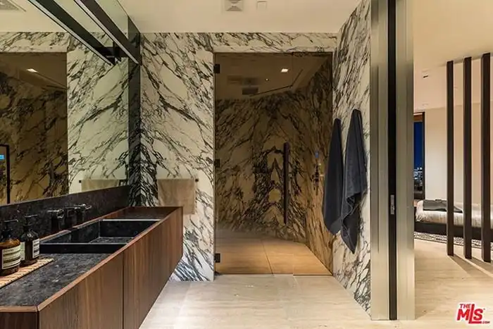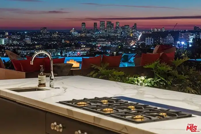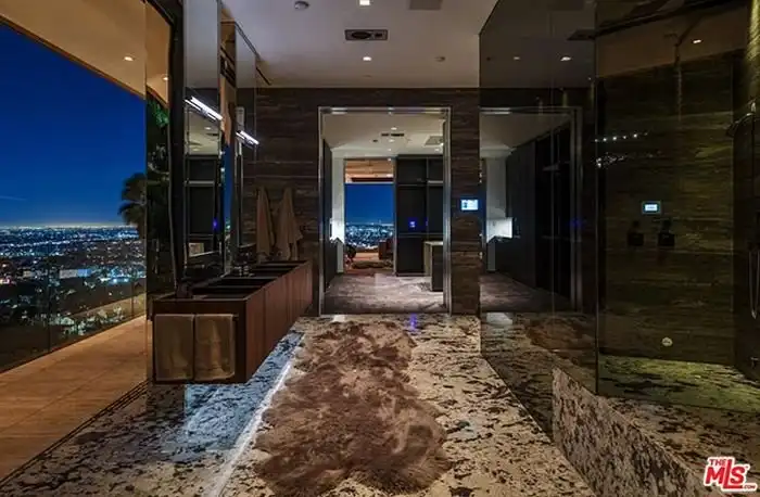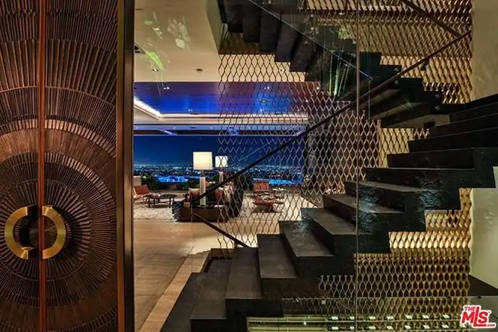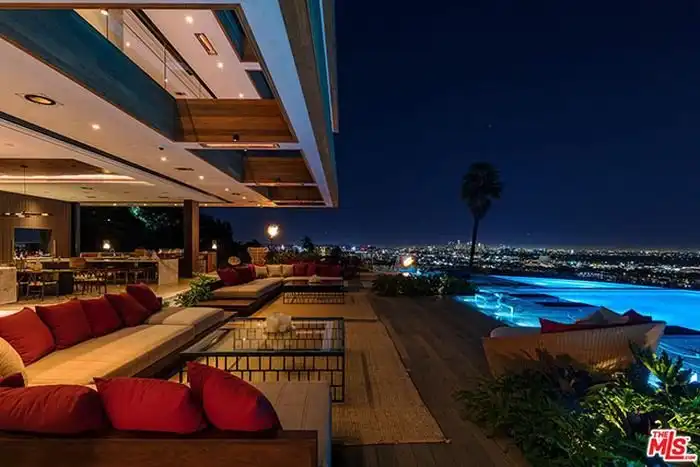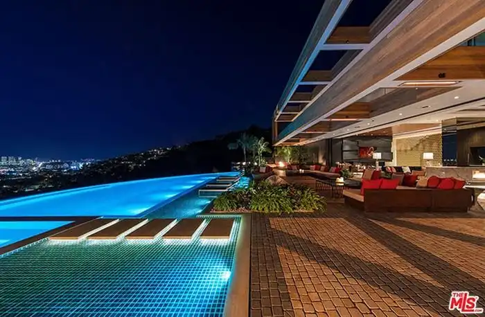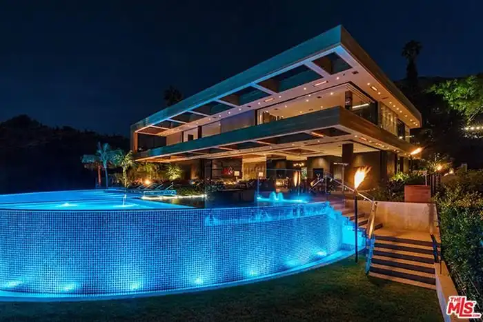Предлагаем вам совершить увлекательную фотоэкскурсию по особняку, расположенному в дорогом районе Голливуд Хилс, Лос-Анджелес, стоимость которого составляет 38 миллионов долларов. На площади в 990 кв.м расположились 5 спален, 7 ванных комнат, персональный лифт, открытая прихожая, кабинет для работы, кинотеатр, гараж и много других помещений. Конечно же, возле дома имеется облагороженная терраса, кухня для барбекю и уникальный бассейн. Как говорится, красиво жить не запретишь.
