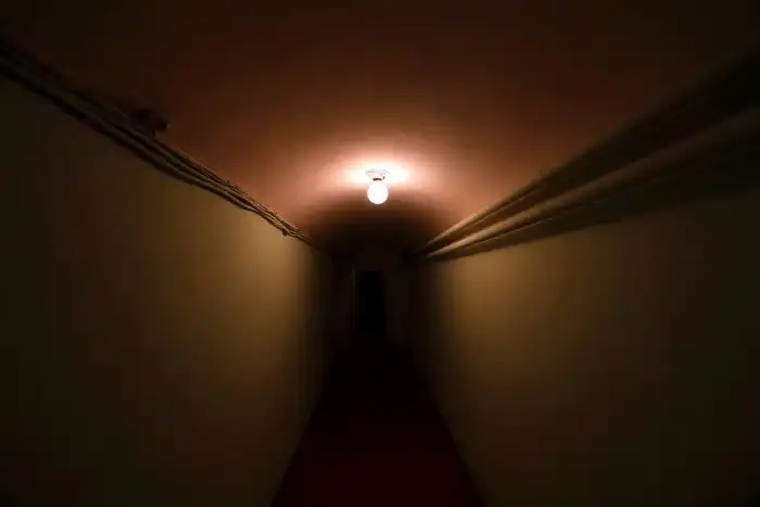 Посреди коридора, ведущего к запасному выходу, расположен вход в главную часть бункера — вертикальный ствол-убежище, уходящий в глубь земли ещё на 23 метра. Он — точная копия тоннеля метро, прорытого вертикально. (Фото David Gray):