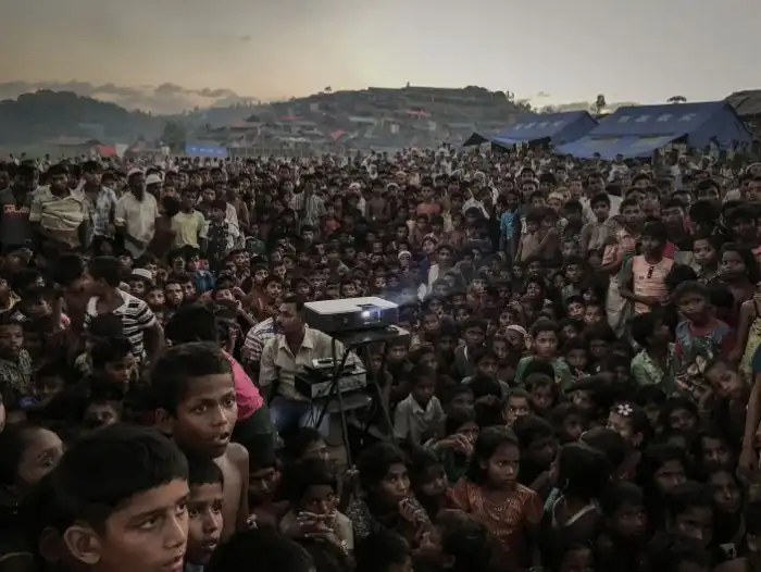 Премия «Гран-при» Фотограф года присудили Джашиму Саламу из Бангладеш за его фото "Displaced". Беженцы этнической группы Рохинджа из Мьянмы смотрят фильм о здоровье и гигиене в лагере для перемещенных Тангхали в Ухии.