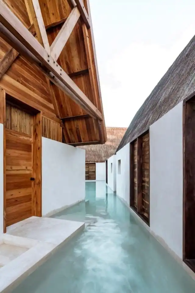 Архитектурная фирма Estudio Macías Peredo создала в Мексике уникальную гостиницу под названием Punta Caliza. Отель расположен всего в 100 метрах от Мексиканского залива, а его основной изюминкой является то, что все постройки как будто находятся в воде. Отель имеет 12 уникальных номеров, а его дизайн был вдохновлен архитектурой майя полуострова Юкатан. Смотрим далее на интерьер этого необычного, но очень уютного отеля.