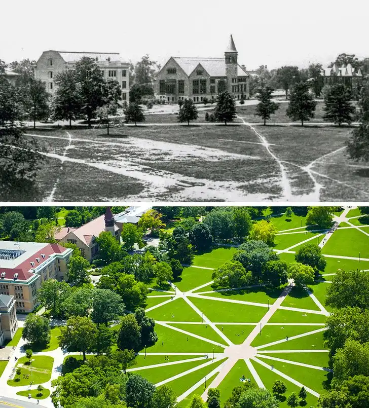 5. Дорожки в Университете штата Огайо вымощены на основе тропинок, которые студенты вытоптали, как им было удобно