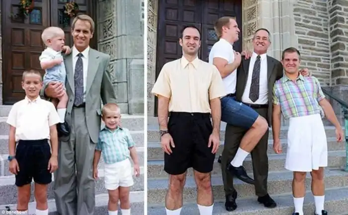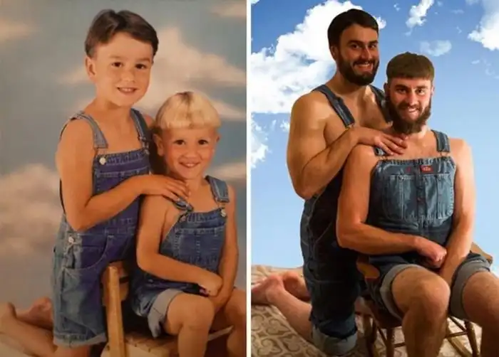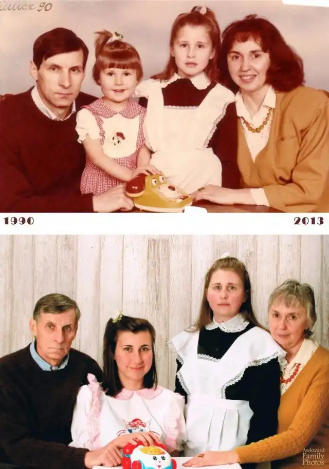 Многие люди любят воссоздавать свои старые фотографии спустя много лет, а затем выкладывать их на просторы сети. Такие снимки всегда выглядят весьма интересно, ведь на них можно увидеть, как с годами меняются люди. Давайте посмотрим на подборку таких семейных фотографий в стиле: "Тогда и сейчас".
