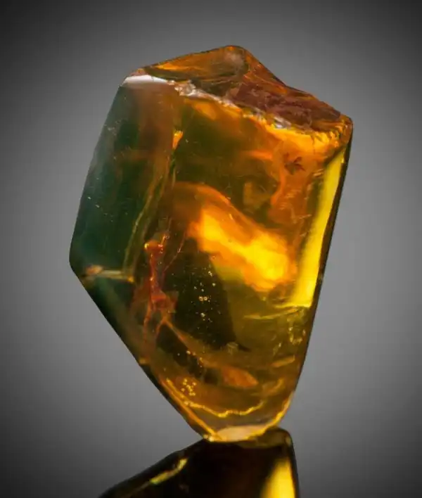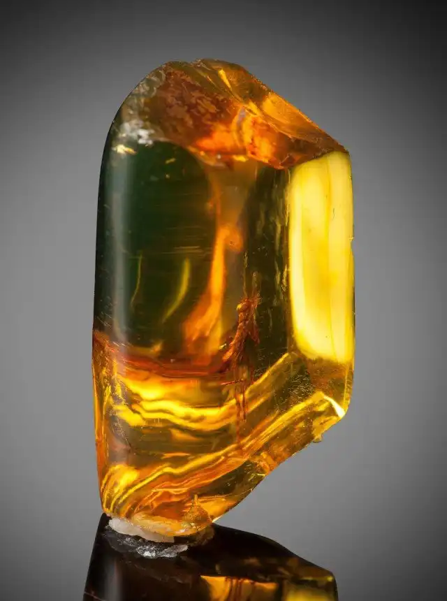Этот кусок янтаря уникален - в нем заключен "молящийся" богомол, обитавший на Земле 12 миллионов лет назад. Существо с треугольной головой, выпуклыми глазами и гибкой шеей отлично видно в исключительном экземпляре окаменевшей ископаемой смолы.