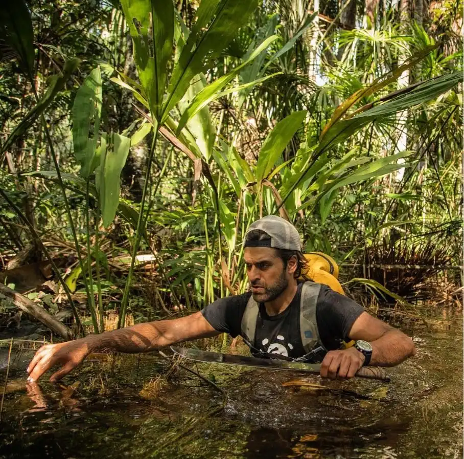 Мужчина пробирается сквозь болотистые джунгли, чтобы встретиться лицом к лицу с зеленой анакондой, самой большой змеей в мире
