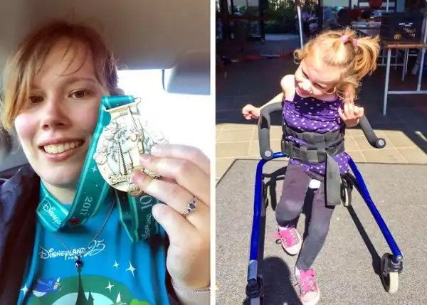 Девушка через год после операции на бедре выиграла Диснеевский марафон в 10 км, чтобы собрать деньги для девочки, которая страдает церебральным параличом
