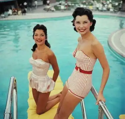 Подборка девушек в купальниках 50х годов. Иногда будут попадаться фото и модели конца 40х, начала 60х годов. Для ценителей красивых женщин.