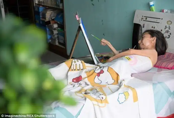 40-летняя жительница Китая Чжан Цзюнли вот уже 32 года прикована к постели из-за тяжелейшего ревматоидного артрита. Последние несколько лет ее жизнь - это рисование, и можно без преувеличения сказать, что именно оно и держит ее на плаву. Художница продает свои работы через интернет, и они пользуются спросом - возможно, во многом из-за трагической судьбы автора. Но вроде бы и сами картины неплохи?