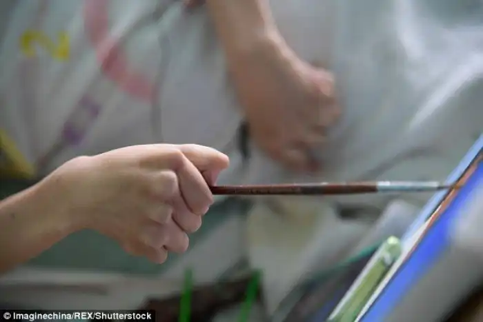 Кисточку художница может держать только зажав между большим и указательным пальцами
