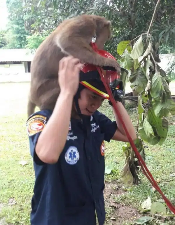 Эта 6-летняя обезьянка провела практически 5 лет своей жизни в одном из монастырей с монахами, но в один прекрасный день она оказалась в ловушке в храме. Она забралась в глубокий высохший колодец, но не смогла самостоятельно выбраться. Тогда на место происшествия прибыли спасатели, которые смогли извлечь ее из колодца. Обезьянка не знала, как отблагодарить своего спасителя, поэтому просто забралась к нему на спину и крепко обняла. Очень трогательный момент, который удалось запечатлеть на камеру.