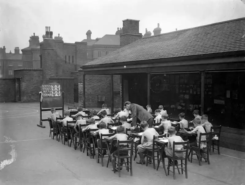 В 1907 году в Британии открылась первая школа под открытым небом. А к 1937 году на всей территории страны было создано 96 дневных школ и 53 школы-интерната такого типа. Причина популярности учебных заведений под открытым небом была проста - они использовались как средство борьбы с туберкулезом, который стремительно распространялся в то время.