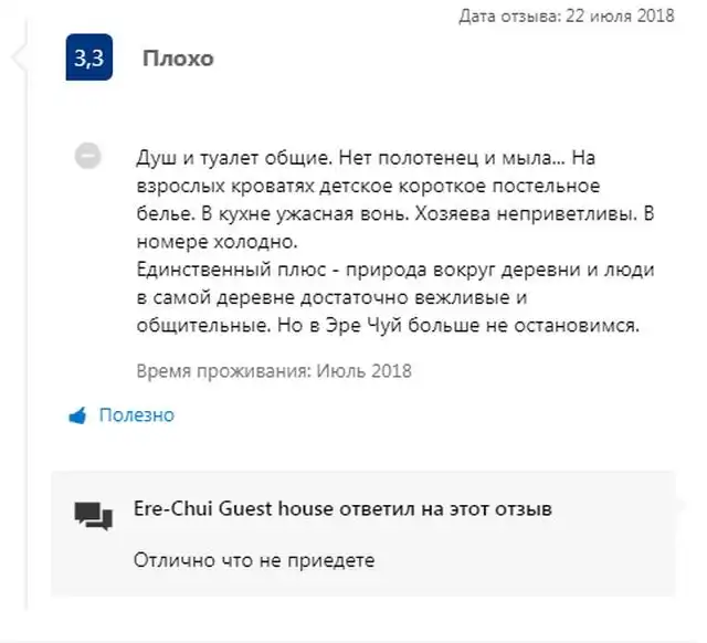 Алтай можно назвать одним из самых перспективных направлений для внутреннего туризма в нашей стране. Нетронутая природа, чистейший воздух, озера и ледники манят сюда российских туристов, но, к сожалению, в подобном отдыхе есть и свои минусы. Одним из основных недостатков является устаревший сервис, который по-прежнему живет парадигмами 90-х годов. В качестве примера предлагаем вам посмотреть на скриншоты общения владельцев одного из Гостевых домов с клиентами.