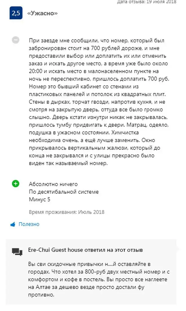 Алтайский гостиничный сервис и проблемы в общении с клиентами