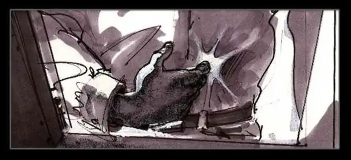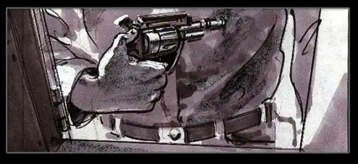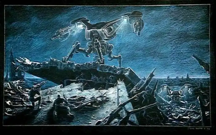Если вы не знали, то изначально роль Терминатора должна была достаться вовсе не бодибилдеру Арнольду Шварценеггеру, а Лэнсу Хенриксену. По задумке, Терминатор должен был стать незаметным убийцей, который мог бы смешаться с толпой, а не наоборот выделяться из нее. Как известно, Джеймс Кэмерон, работая над фильмом вместе со штатными художниками, нарисовал целый ряд иллюстраций о том, каким он видит будущую кинокартину. Но, к сожалению, в фильм вошли далеко не все из предложенных им эпизодов. Давайте посмотрим на его рисунки далее.