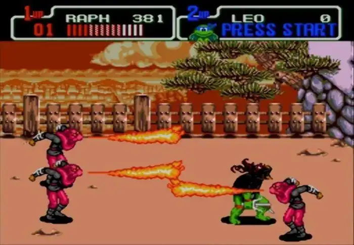 Боевые приключения черепашек-мутантов продолжаются. Им противостоит огромное количество приспешников Шредера, но четыре бравых ниндзя легко от всех отбиваются. Пицца, валяющаяся в разных местах, используется для пополнения жизненных сил. Энергичная игрушка с хорошей графикой. Можно играть как одному, так и вдвоем.
