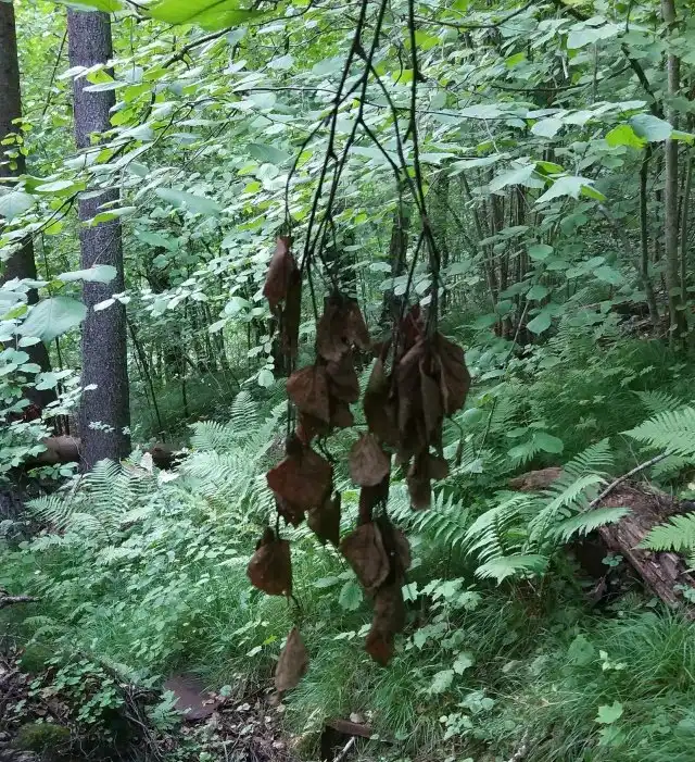 Идешь такой, гуляешь спокойно по лесу, как вдруг на глаза попадается вот такая картина. Автор снимков рассказал, что он аж остановился, а его сердце начало бешено биться в груди, когда он заметил "нечто" висящее на дереве. Несмотря на страх, парень решился подойти поближе, чтобы узнать, что там произошло.