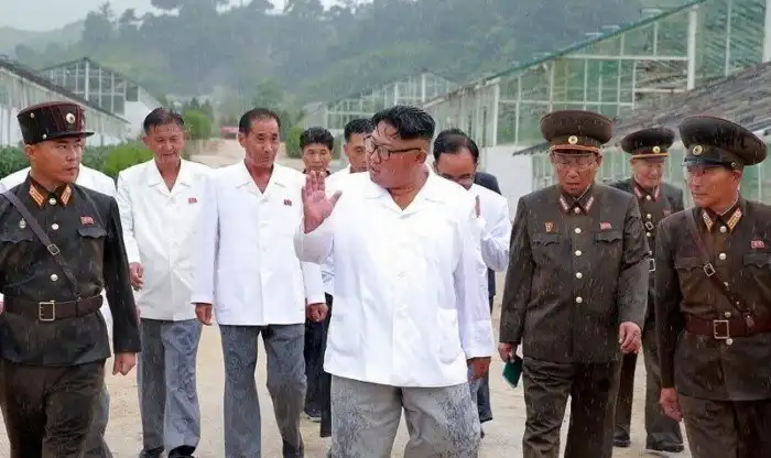 Даже дождь не смутил северокорейского лидера. Когда во время его визита в Вонсан-Калма испортилась погода, Ким не обрати внимания на брызнувший дождь и даже не встал под зонтик. Вместе с ним, разумеется, без зонтов шли и сотрудники строящегося объекта. С такой дисциплиной туристический рай, несомненно, будет построен в срок!