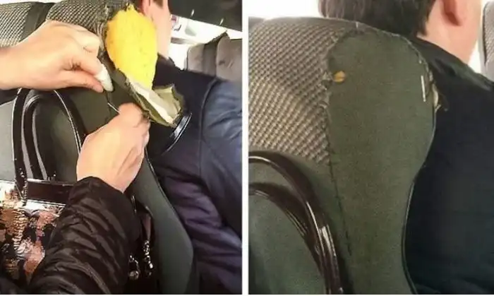 12. Женщина отремонтировала спинку кресла, пока ехала в автобусе