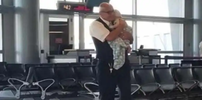 5. Сотрудник аэропорта помогает матери, путешествующей в одиночестве, успокоить плачущего ребенка