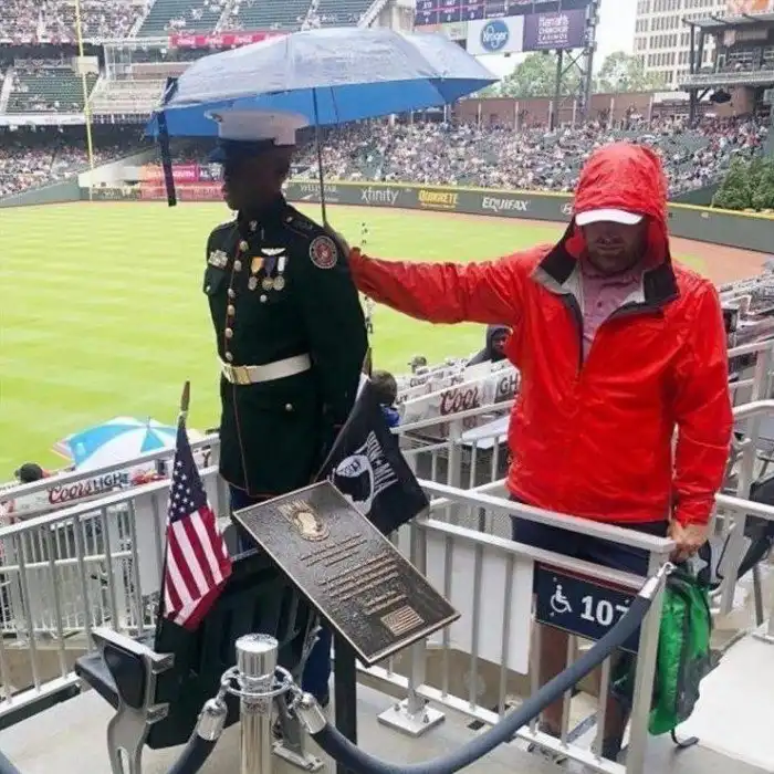 8. Этот парень во время матча прикрывал солдата зонтом, чтобы тот не промок