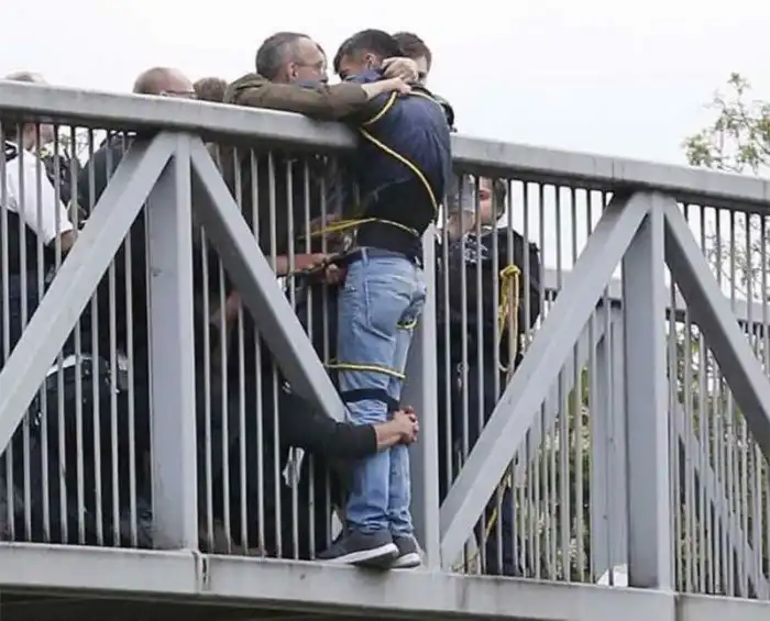17. Мужчина хотел прыгнуть с моста, а это момент, когда чужие люди держатся за его жизнь