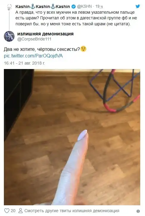 Пользователи социальной сети обнаружили одну интересную закономерность - у большинства мужчин имеются странные шрамы на левом указательном пальце. В одной из групп в Twitter пользователи стали выкладывать свои фотографии, удивляясь схожести тех или иных шрамов, заработанных за свою жизнь.