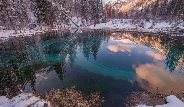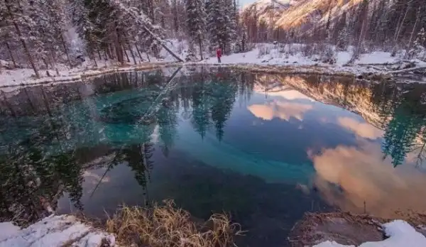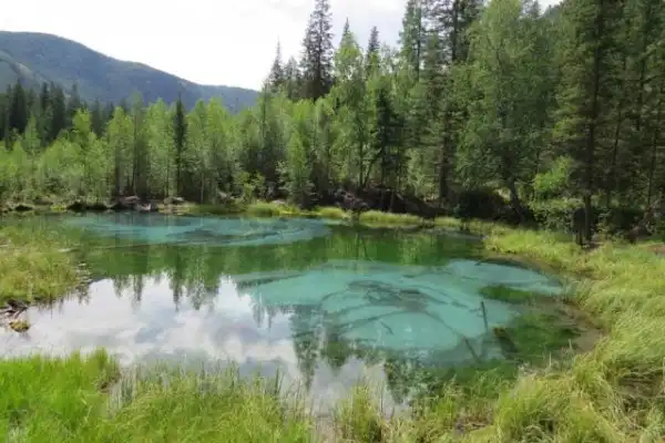 Красивое гейзерное озеро в Горном Алтае