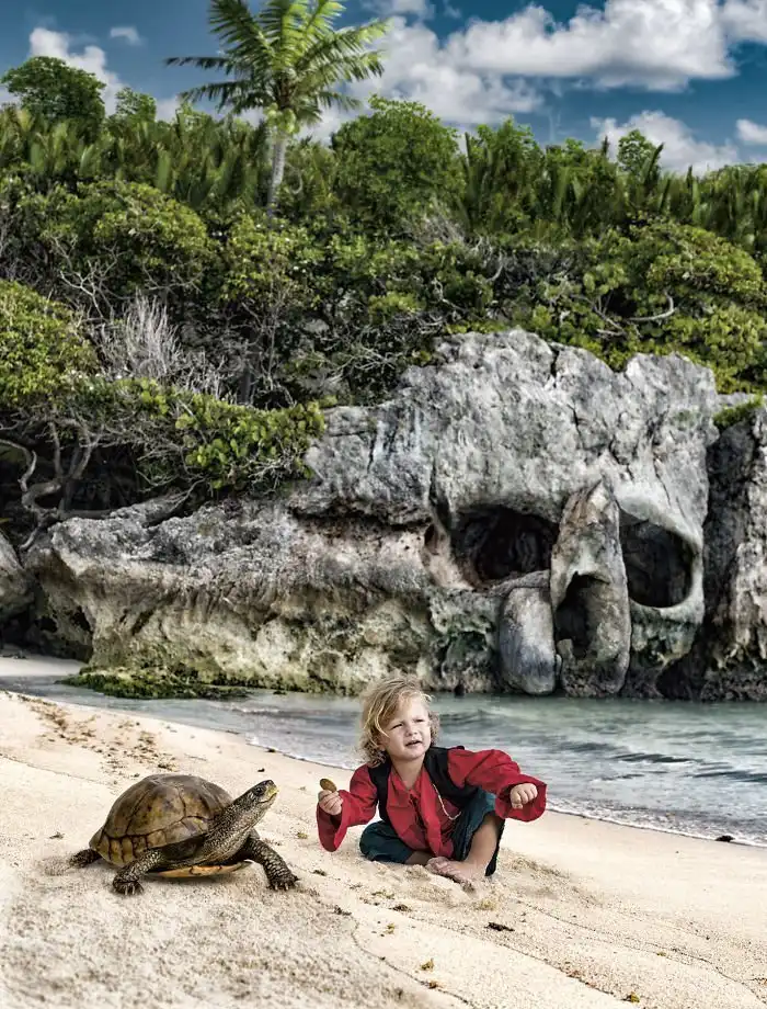 Графический дизайнер и фотограф из Швейцарии Кан Изик начал этот проект два года назад, во время отпуска с семьей на острове Барбадос. И неожиданно увлекся не на шутку! Фотокнига про приключения мальчика Синана (в роли которого выступил сын автора) уже издана на немецком языке и до конца года будет переведена на английский. Оказалось, что детские книги такого формата более чем востребованы. По сюжету главный герой, мальчик из Швейцарии, отправляется в путешествие по разным местам и эпохам, переживает множество интересных приключений, и в конце концов возвращается домой, к своей семье. В книге 60 страниц, 50 фотографий и коллажей.