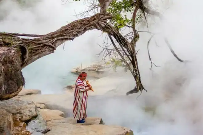 По приезду, перед его глазами предстала шестикилометровая река кипящей воды, святое геотермальное место народа ашанинка.