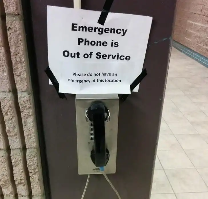 «Аварийный телефон не работает. Пожалуйста, не попадайте в чрезвычайные происшествия в этой зоне».