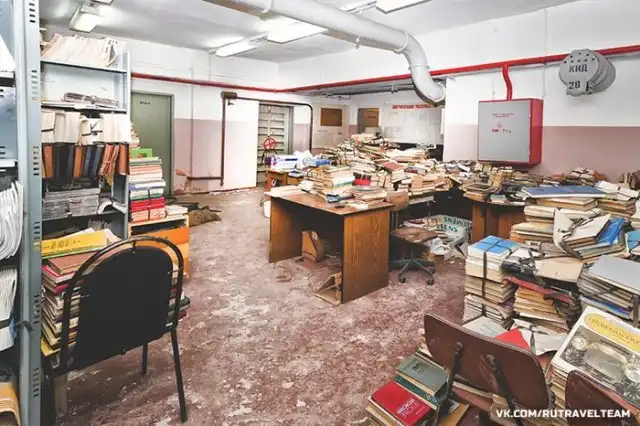 Советское бомбоубежище, полностью заполненное книгами