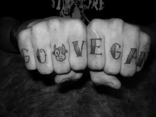Интересный пласт этой культуры - веганские татуировки. Тут даже чернила для тату нужны особые, без животного глицерина. Прежде чем нанести на тело рисунок, веган тщательно изучит состав краски. А сюжеты большинства татуировок сводятся к двум композициям: все животные друзья и слово Vegan, красиво декорированное различными паттернами. Желательно, что бы все это видели и понимали, что перед тобой веган.