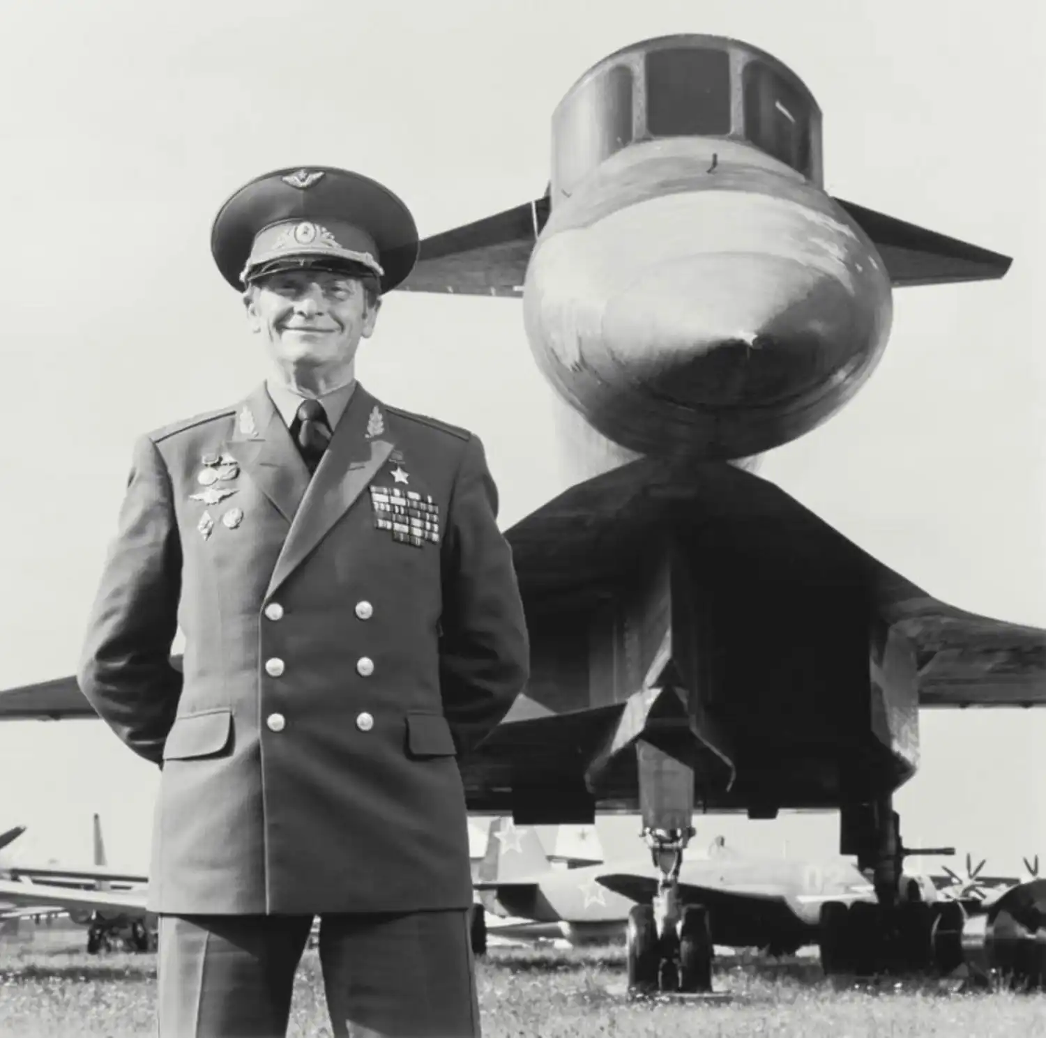 Летчик–испытатель, генерал–майор авиации Владимир Ильюшин в Центральном музее Военно–воздушных сил в Монино.