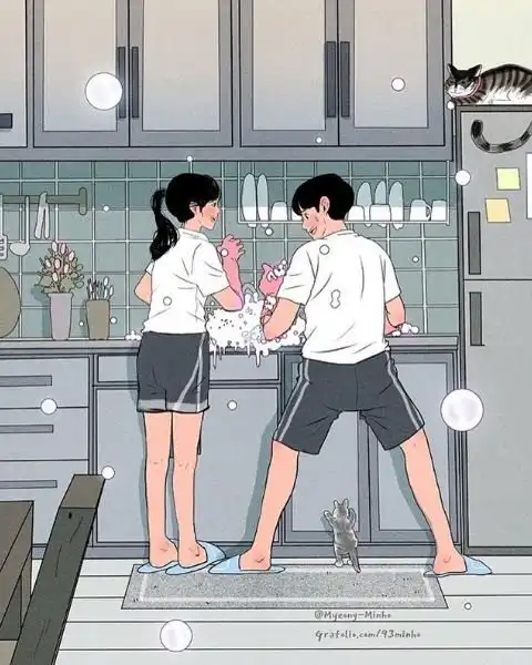 Myeong-Minho — художник из Южной Кореи, который показывает, как выглядит жизнь пары, опираясь на свой личный опыт. Он напоминает, что так часто самыми лучшими и важными являются именно простые повседневные мелочи, связанные с вашим любимым человеком. И не обязательно, чтобы они были романтичными. В результате у художника получаются чувственные и трогательные иллюстрации о любви. Myeong-Minho регулярно публикует новые работы в своем инстаграме, при этом он рисует не только любовь.