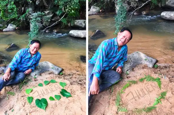 «Папа влюбился в одну даму и, когда мы отправились в поход, написал ее имя на песке и отправил ей эти фотки»