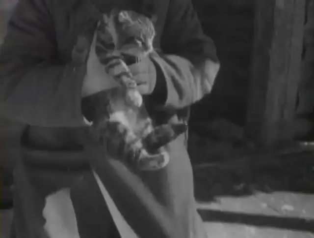 Этому коту повезло, красноармеец-сапер мину обезвредил и кота спас.