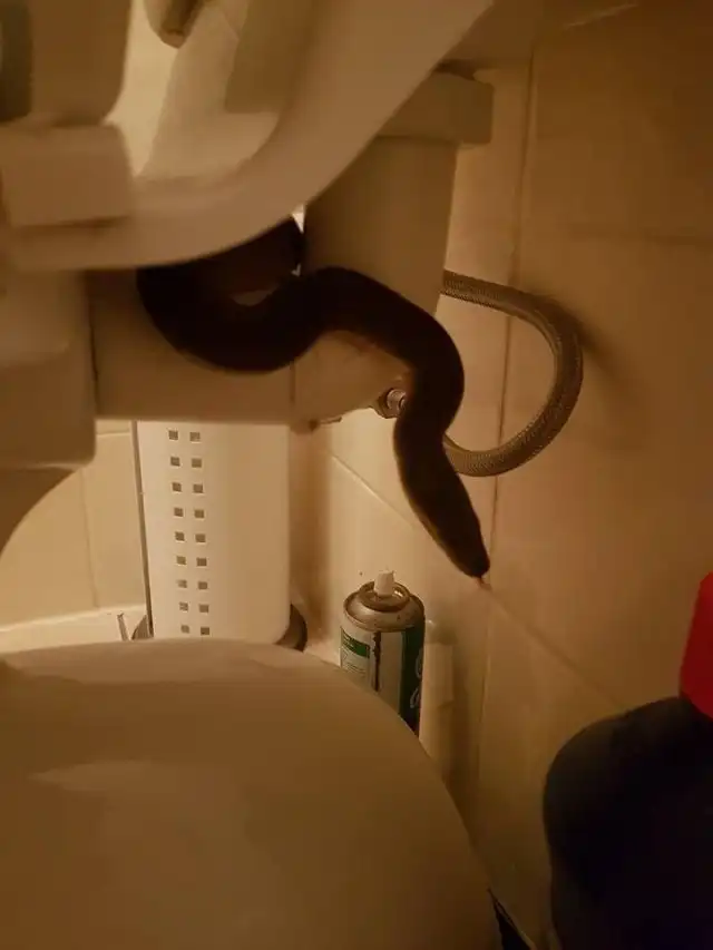 Во время засухи у змеелов резко увеличивается объем работы. В поисках прохлады пресмыкающиеся по трубам забираются в дома, где их излюбленными местами стали туалеты и ванные комнаты. В данном случае под крышкой унитаза был обнаружен питон, поэтому можно считать, что хозяину еще повезло.