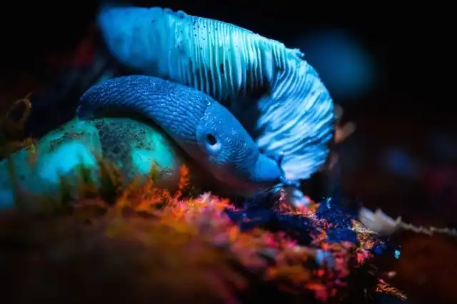 А вот так выглядит обычный слизняк в УФ свете.