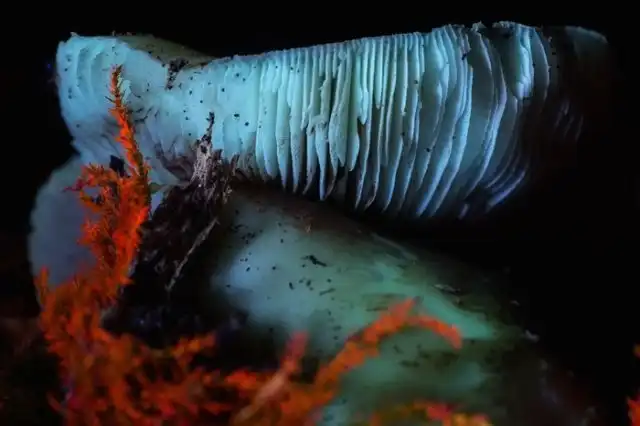 Очень интересным является и то, что обычные сыроежки начинают светиться ярко голубым цветом.