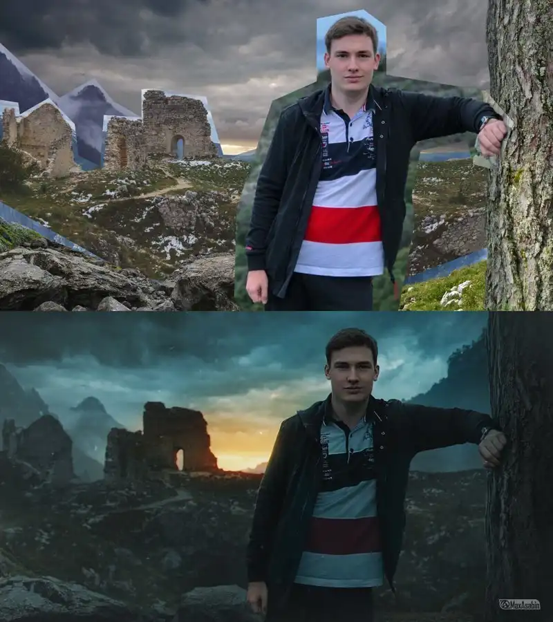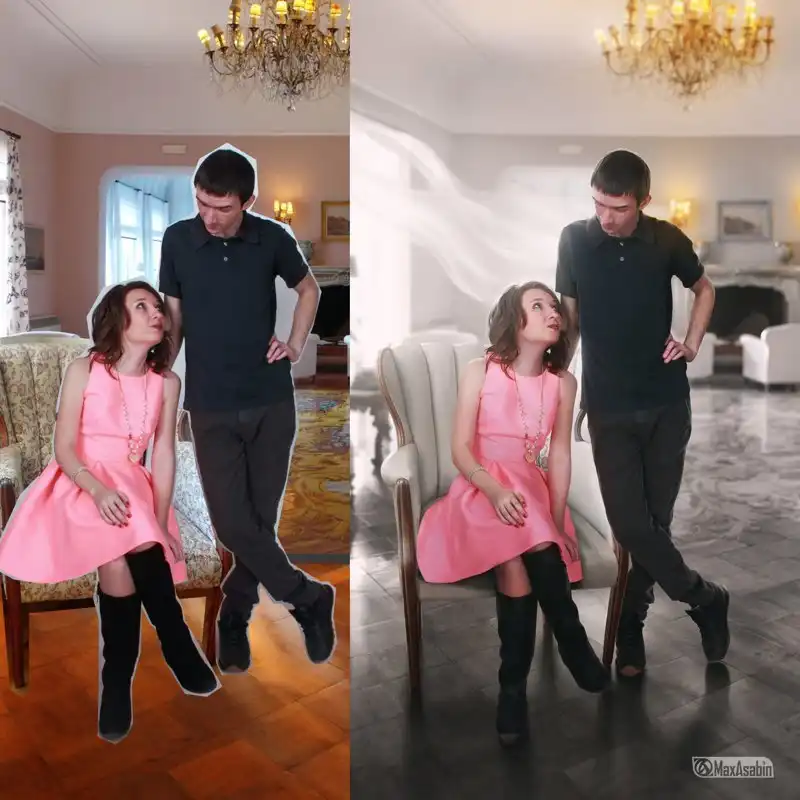 Макс Асабин — российский компьютерный дизайнер, который вывел понятие «коллаж» на совершенно новый уровень. Он берёт несколько фотографий и соединяет их в одну, причём делает это настолько мастерски, что результат получается действительно впечатляющим.