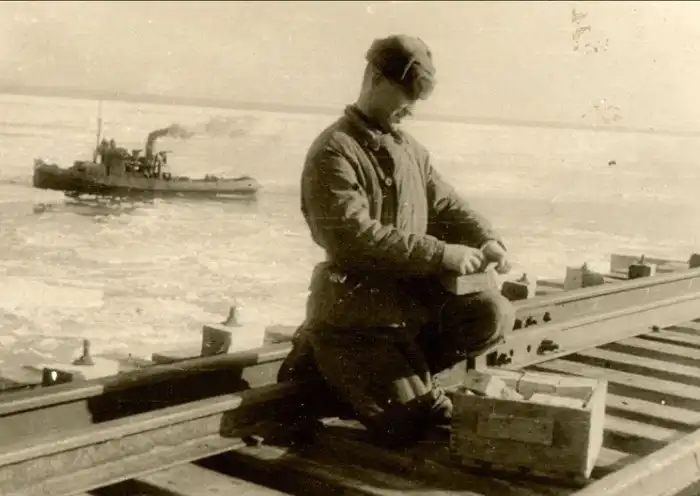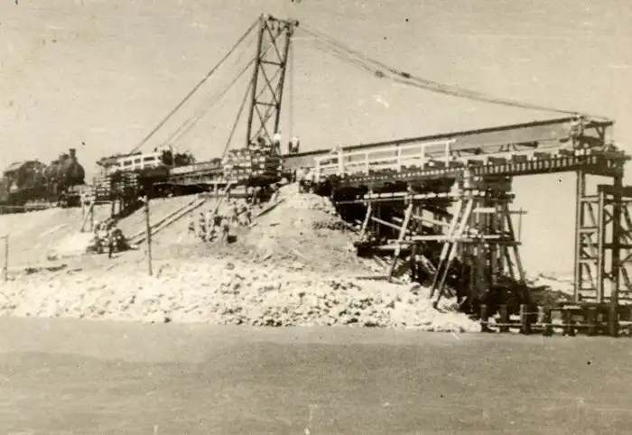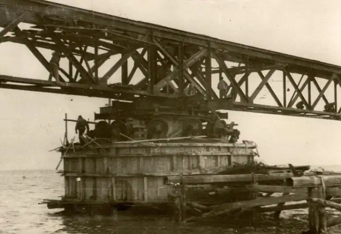 14 июня 1943 года через Керченский пролив немцы пустили подвесную дорогу. К этому моменту были завезены строительные материалы и рабочие. Все было готово для начала возведения 5-километрового моста. Работы на объекте велись непрерывно. Однако завершить начатое нацисты не смогли. Их амбициозные планы разрушило наступление Красной армии. Когда стало понятно, что война обратилась вспять, немцы взорвали «канатку», предварительно демонтировав часть уже построенного моста.