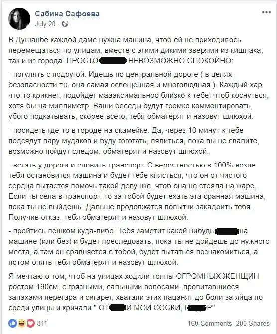 Данная инициатива властей Таджикистана началась после общественного резонанса, вызванного публикацией жительницы Душанбе Сабины Сафоевой на Facebook, в которой девушка поделилась накипевшими эмоциями на тему отношения с женщинам на улицах города: