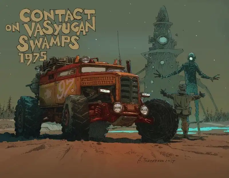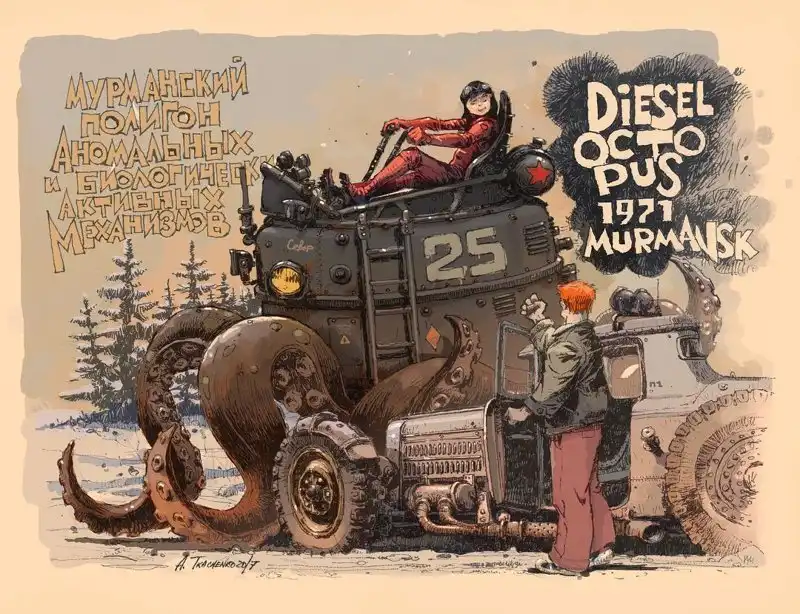 Художник из Нижнего Новгорода Андрей Ткаченко рисует в стиле "ностальгический дизель-панк". Его ожившие машины и механизмы обитают то ли в ностальгической советской эпохе, то ли в реальности постапокалипсиса. А может, это одно и то же?