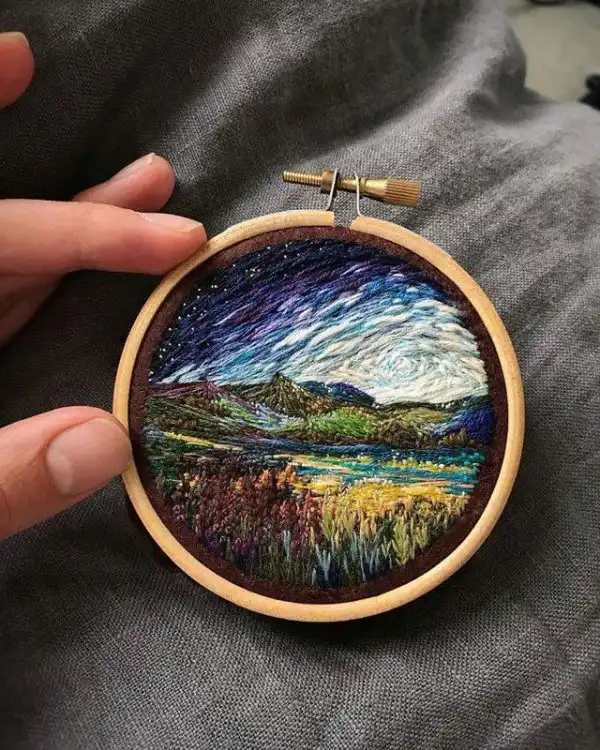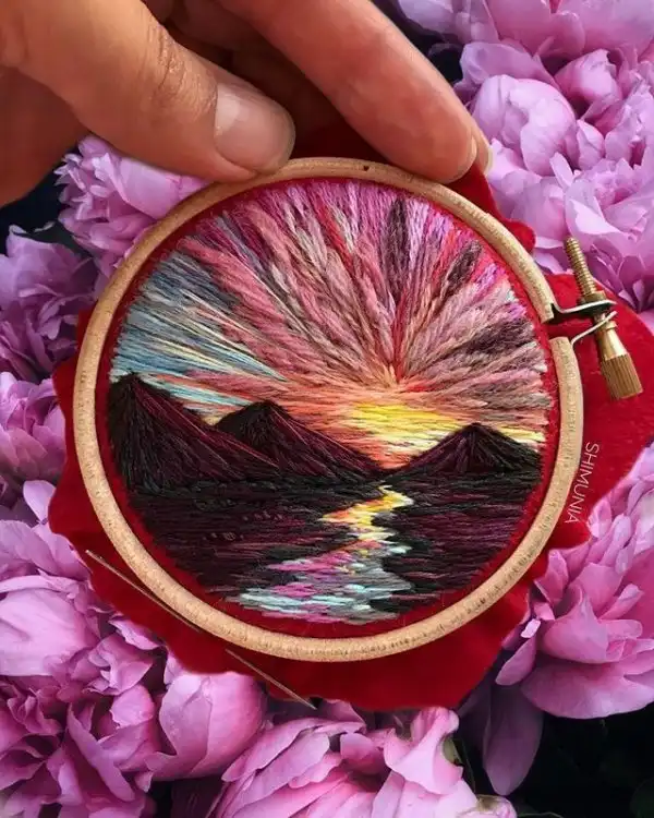 Вера Шимуния из Санкт-Петербурга не просто талантливая вышивальщица, а еще и художница. Она кропотливо вышивает на пяльцах миниатюрные пейзажи, поразившие ее в путешествиях или возникающие в ее воображении. Получается очень годно.