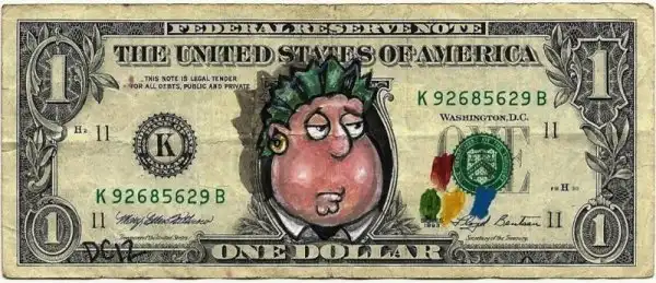Вообще, рисовать на деньгах, конечно, не очень хорошо, а в некоторых странах так и вовсе незаконно. И тем не менее, стоит признать, что те самые «зелёные бумажки», которые давно хорошо известны во всём мире, уже порядком поднадоели. Вот художники и упражняются в креативности, разрисовывая доллары и изображая на них разных известных людей.