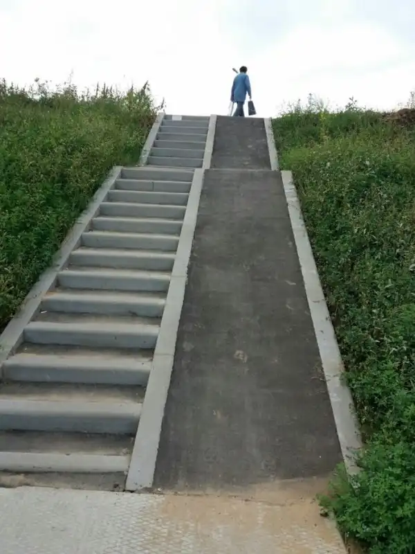 Вот такое необычное сооружение построили в мирорайоне Вяткино города Владимир, которое пользователи сети уже прозвали экстремальным спуском для тренировки паралимпийского движения. Но, к сожалению, это не совсем так, ведь эта конструкция была построена для инвалидов-колясочников. Только хотелось бы узнать, как инвалиды тут будут спускаться?