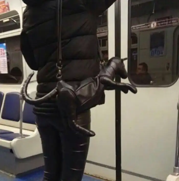 15. Упс! Кажется, сумки-таксы уже успели устареть. Им на смену пришли сумки-кенгуру