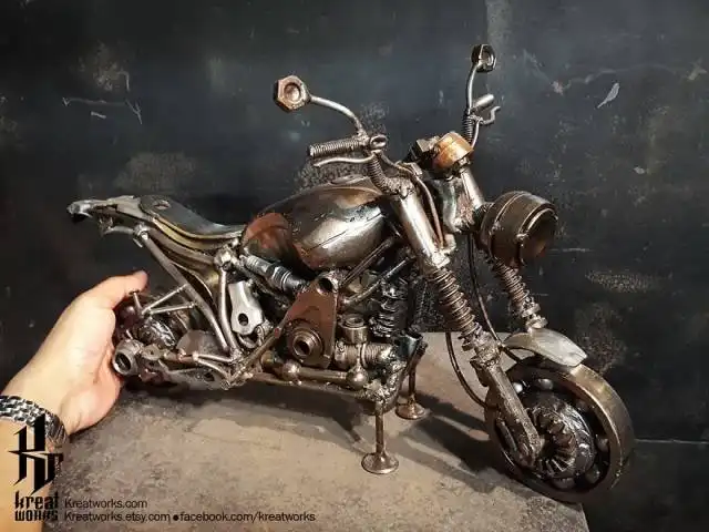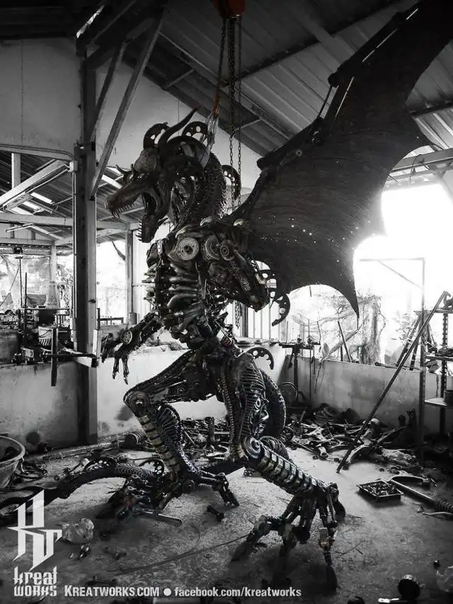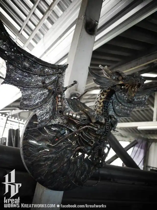 Мастер из Таиланда уже на протяжении последних 12 лет делает из металла удивительные стимпанк-скульптуры на любой вкус. Он берет детали от разбитых машин, мотоциклов и другой техники, чтобы создавать необычные произведения искусства, на которые вам будет интересно посмотреть. По словам автора, на каждую подобную работу у него уходит в среднем около двух месяцев, ведь занимается он этим только на досуге.